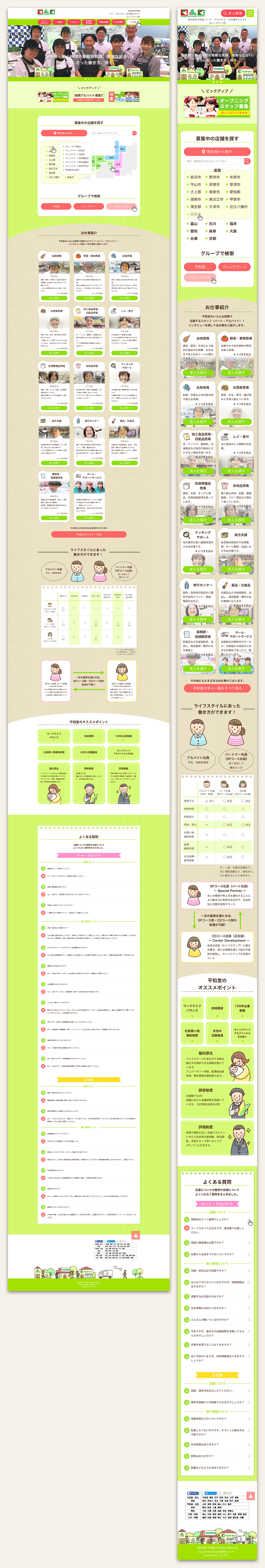 滋賀県を中心に近隣府県にも展開する平和堂グループの求人サイト。求人検索だけでなく、会社の取り組みや制度、25名にも及ぶ先輩たちのインタビューなどボリュームのある内容の全てのデザインを担当させていただきました。平和堂グループの魅力ある取り組みや制度が応募者に分かりやすく伝わるよう図などの制作にも気を配りました。